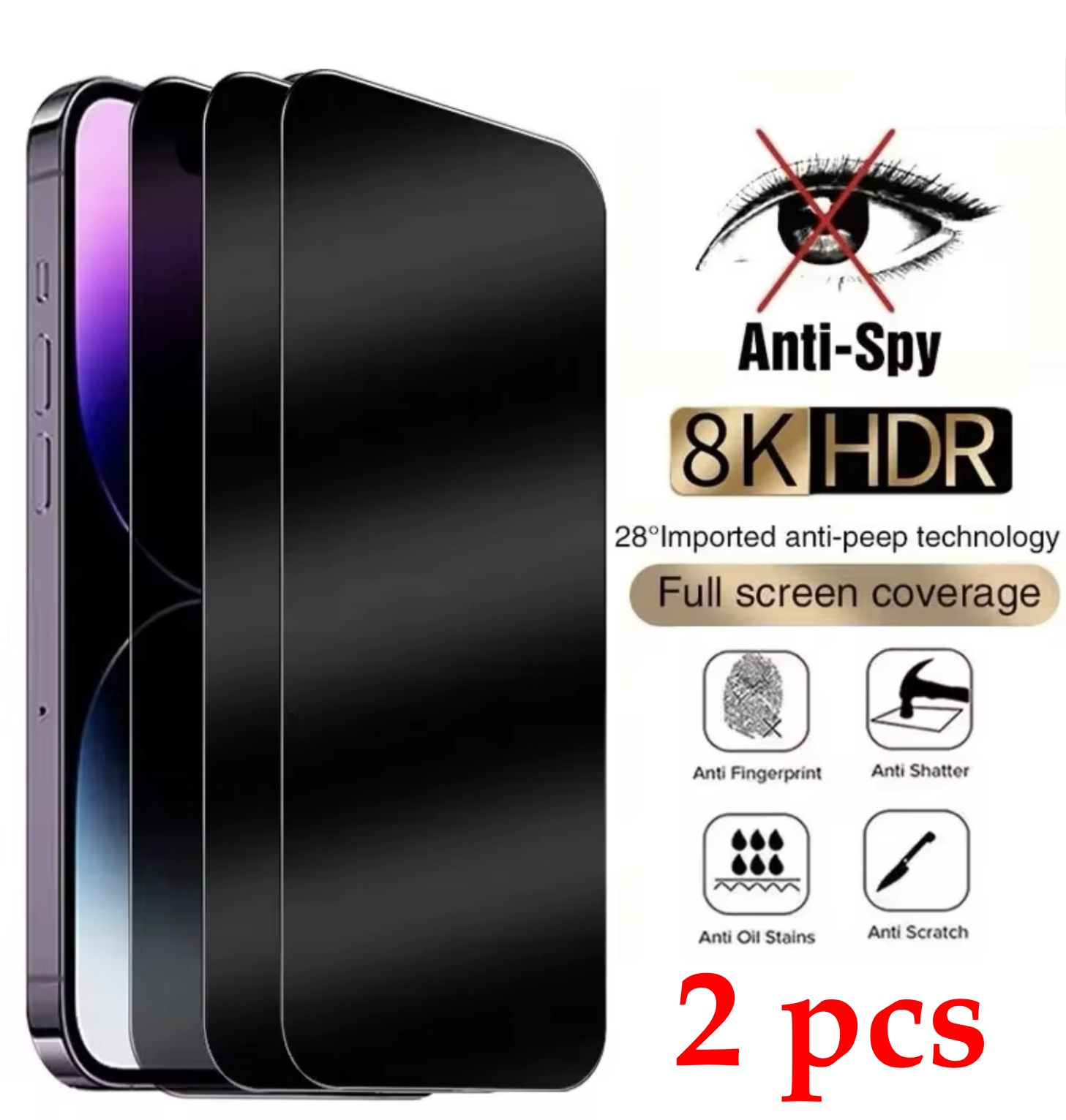 Protect your iPhone 15, 14, 13 Pro Max, 11, or 12 X with this full coverage tempered glass screen protector. The anti-spy and water-resistant design ensures your privacy while using your phone. The protector is made of heavy-duty tempered glass that is shockproof and case-friendly.