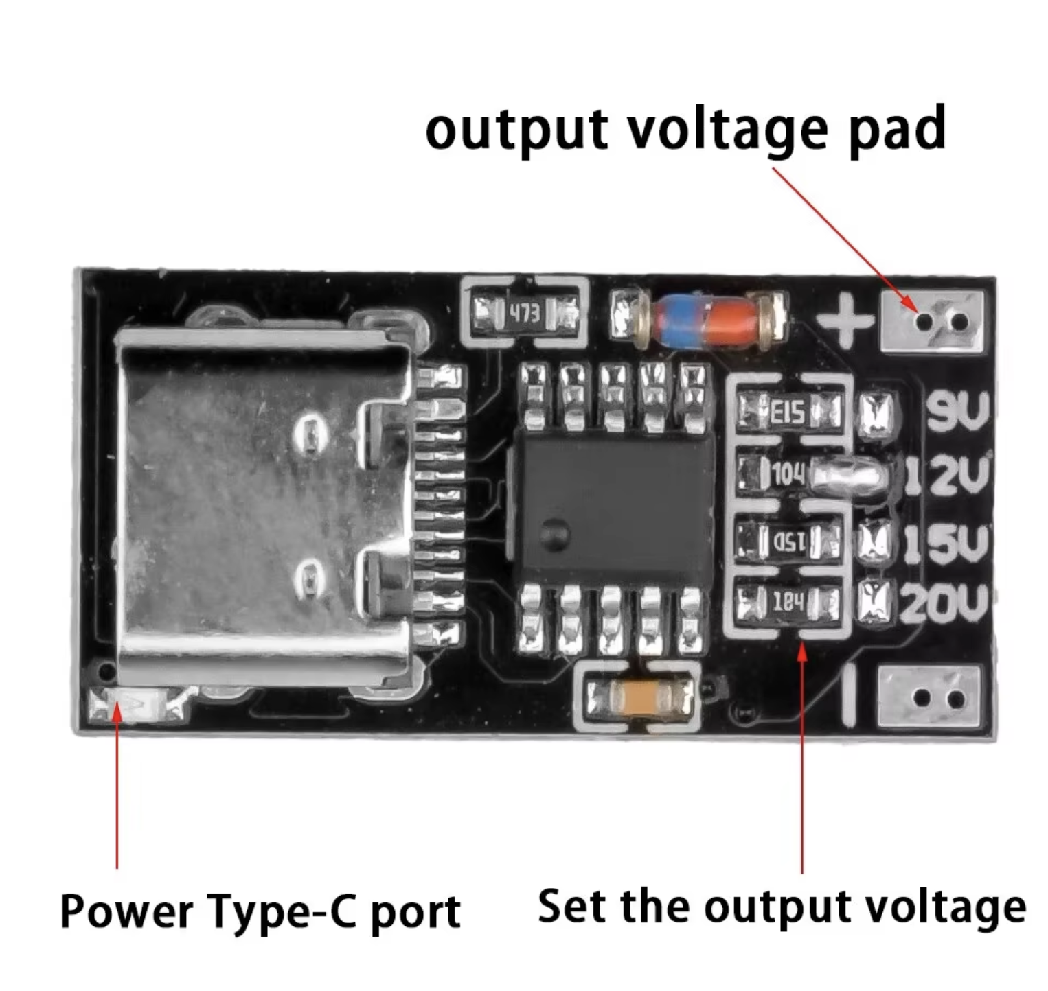 2. Fix the four gears of 9/12/15/20 volts, what voltage is needed, just short the corresponding pads.